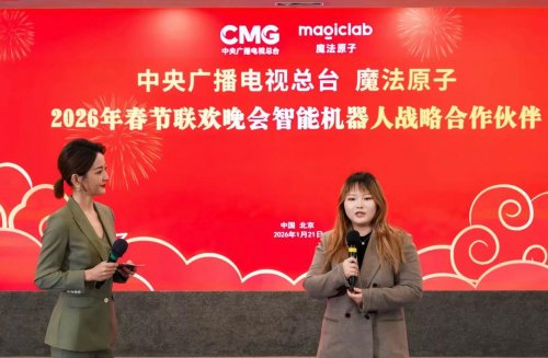 1月21日,中央广播电视总台与魔法原子携手官宣:魔法原子正式成为中央广播电视总台2026年春节联欢晚会智能机器人战略合作伙伴。